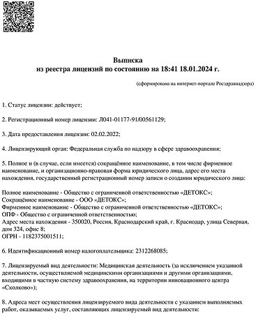 4. Лицензия на медицинскую деятельность Л041-01177-91/00561129.